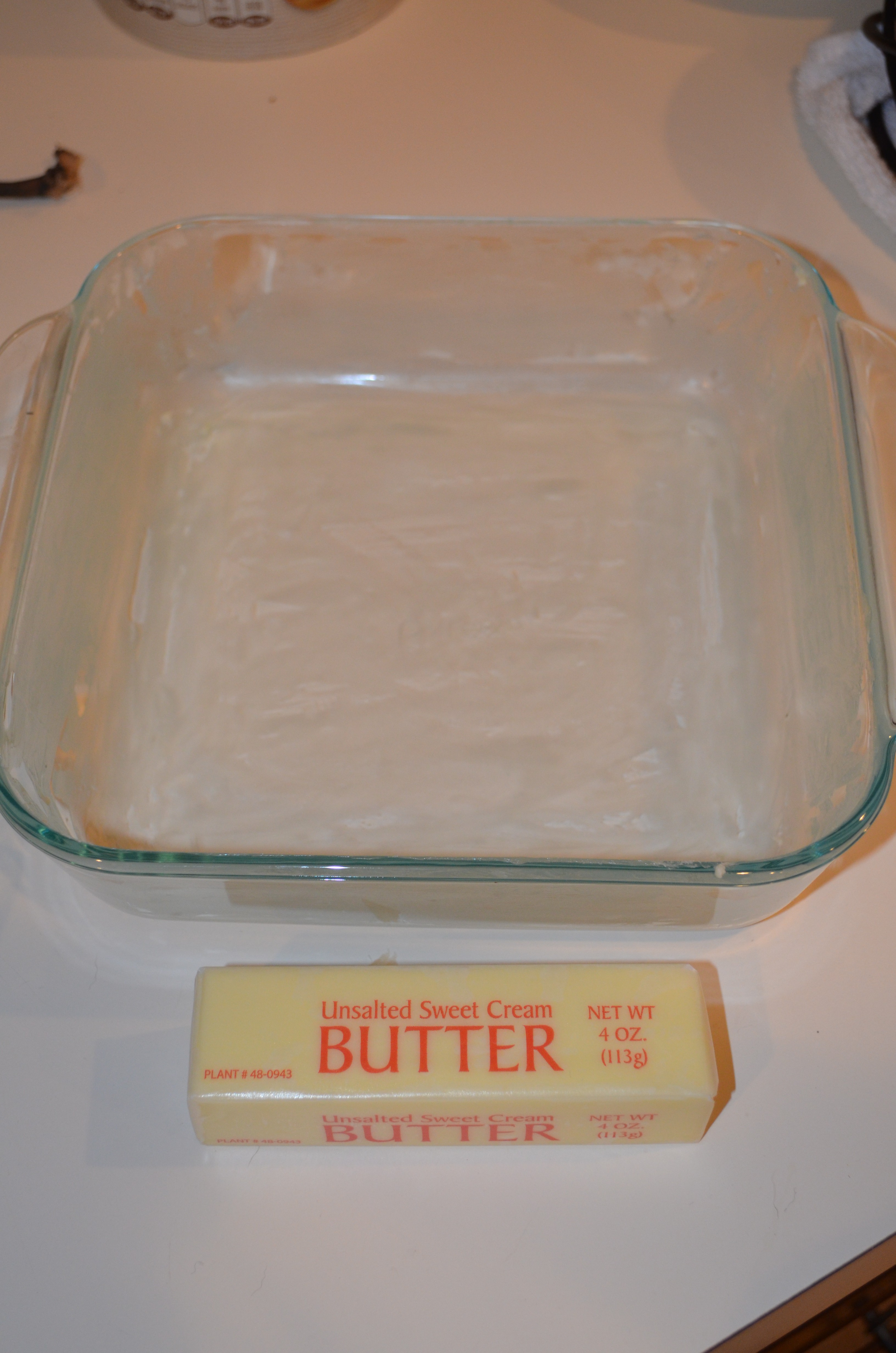 8X8 glass dish, buttered